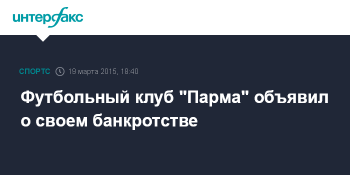 Футбольный клуб "Парма" объявил о своем банкротстве