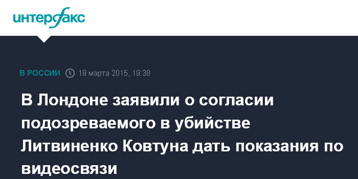 Москва. 19 марта. INTERFAX.RU - Дмитрий Ковтун, являющийся, по версии британского правосудия, одним из двух подозреваемых в деле об убийстве Александра Литвиненко, согласен дать показания по видеосвязи, сообщил советник следственных органов Робин Там.