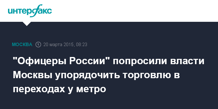 Москва. 20 марта. INTERFAX.RU - Глава Общероссийской организации "Офицеры России", председатель комиссии по безопасности Общественной палаты РФ Антон Цветков просит столичные власти навести порядок в примыкающих к станциям метро подземных переходах, где, по его данным, процветает субаренда торговых точек и торговля контрафактом.
