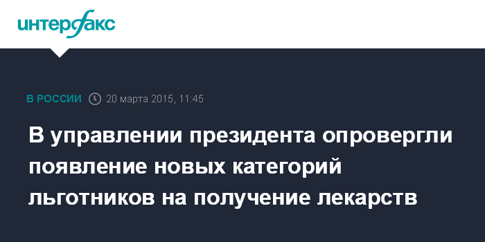 В управлении президента опровергли появление новых категорий льготников на получение лекарств