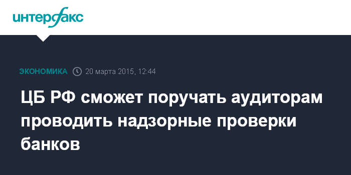Москва. 20 марта. INTERFAX.RU – Банк России теперь сможет давать поручения проводить надзорные проверки банков специально отобранным аудиторам. Регулятор подготовил соответствующие документы-положения ЦБ, они опубликованы в "Вестнике Банка России" в пятницу и вступают в силу по истечении 10 дней.