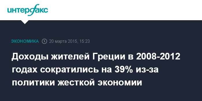 Москва. 20 марта. INTERFAX.RU – Режим жесткой экономии, проводимый правительством Греции по настоянию международных кредиторов, привел к резкому снижению доходов жителей страны, свидетельствуют результаты исследования германского Института исследований в сфере макроэкономики и конъюнктуры (IMK) и Фонда имени Ханса Бёкклера.
