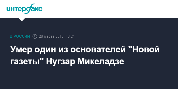 Москва. 20 марта. INTERFAX.RU - На 57-ом году жизни скончался один из основателей "Новой газеты" Нугзар Микеладзе, сообщается на сайте издания.