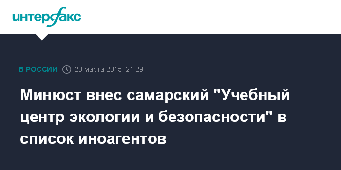 Москва. 20 марта. INTERFAX.RU - Самарское учреждение дополнительного профессионального образования "Учебный центр экологии и безопасности" включено в реестр иноагентов, сообщила в пятницу пресс-служба Минюста России.