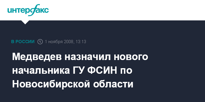 Москва. 1 ноября. INTERFAX.RU - Президент России Дмитрий Медведев подписал Указ "О назначении на должность и освобождении от должности сотрудников органов Федеральной службы исполнения наказаний", сообщает в субботу пресс-служба Кремля. Согласно тексту указа, полковник внутренней службы Константин Березнев назначается начальником Главного управления ФСИН по Новосибирской области, а полковник внутренней службы Владимир Троицкий - начальником медицинского управления ФСИН.