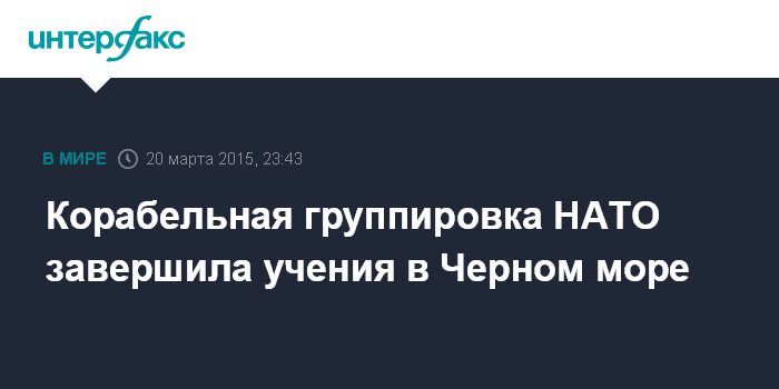 Москва. 20 марта. INTERFAX.RU - Находящаяся в Черном море корабельная группировка НАТО завершила проводившиеся там учения и в ближайшие дни покинет его акваторию, сообщает в пятницу военно-морское командование альянса.