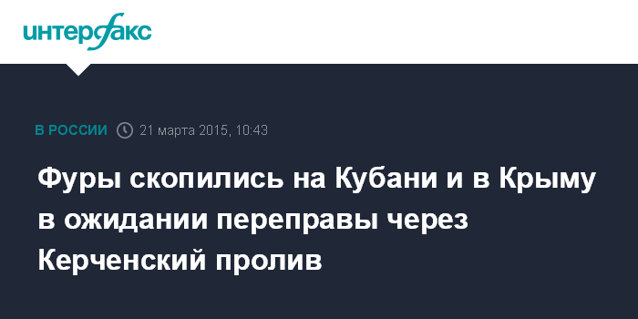 Москва. 21 марта. INTERFAX.RU - Около двух тысяч грузовых машин скопились в Краснодарском крае и Крыму в очереди на Керченскую паромную переправу, сообщила в субботу Единая транспортная дирекция.