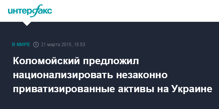 Москва. 21 марта. INTERFAX.RU - Глава Днепропетровской облгосадминистрации, бизнесмен Игорь Коломойский предложил национализировать украинские предприятия, приватизация которых была проведена с нарушениями законодательства.
