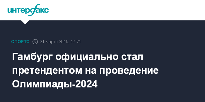 Москва. 21 марта. INTERFAX.RU - Немецкий олимпийский комитет выбрал Гамбург в качестве официального претендента на проведение летних Олимпийских игр 2024 года, сообщает AFP. Отмечается, что в случае неудачи на этих выборах Гамбург будет претендовать на проведение Игр-2028.
