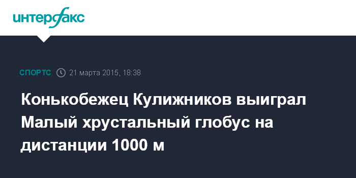 Конькобежец Кулижников выиграл Малый хрустальный глобус на дистанции 1000 м