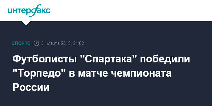 Москва. 21 марта. INTERFAX.RU - В матче 20-го тура чемпионата России по футболу московский "Спартак" одержал победу над столичным "Торпедо".