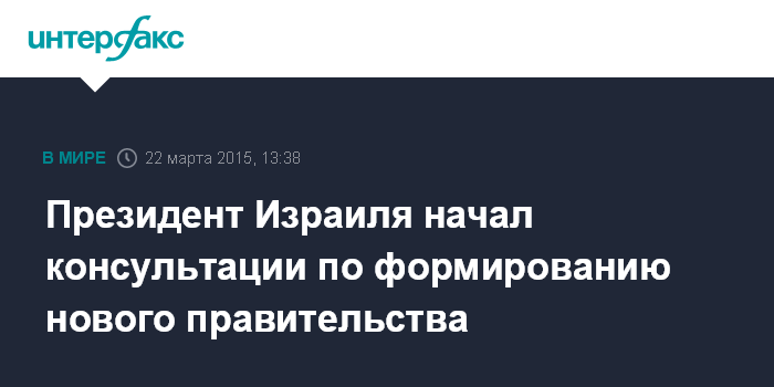 Москва. 22 марта. INTERFAX.RU - Президент Израиля Реувен Ривлин в воскресенье начал консультации по вопросу формирования нового правительства.