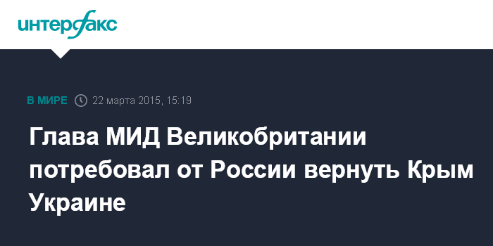 Москва. 22 марта. INTERFAX.RU - Министр иностранных дел Великобритании Филип Хаммонд призвал Россию вернуть Крым Украине.