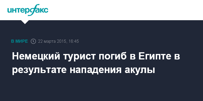 Москва. 22 марта. INTERFAX.RU - Турист из Германии погиб на египетском курорте Эль-Кусаир на Красном море, после того как на него напала акула.