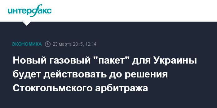Москва. 23 марта. INTERFAX.RU – Новое промежуточное решение о поставках газа на Украину с апреля 2015 года будет действовать не один сезон, как предыдущий "зимний пакет", а до решения Стокгольмского арбитража, заявил заместитель председателя Еврокомиссии Марош Шевчович.
