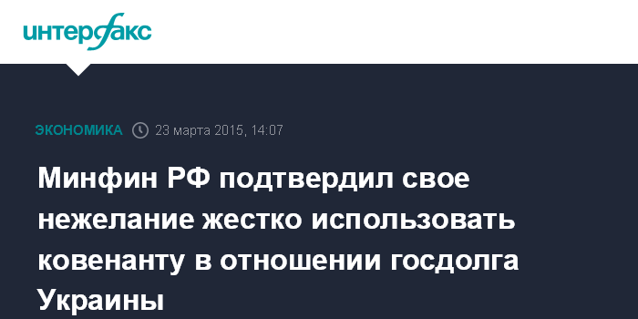 Минфин РФ подтвердил свое нежелание жестко использовать ковенанту в отношении госдолга Украины
