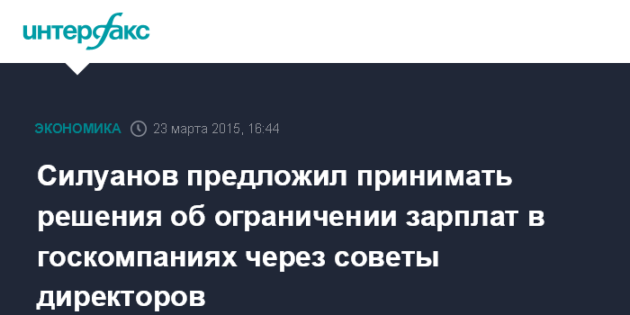 Москва. 23 марта. INTERFAX.RU – Министр финансов Антон Силуанов считает целесообразным проводить решения о сокращении зарплат их сотрудников через советы директоров госкомпаний.