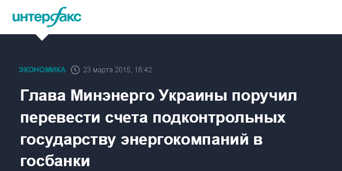 Глава Минэнерго Украины поручил перевести счета подконтрольных государству энергокомпаний в госбанки