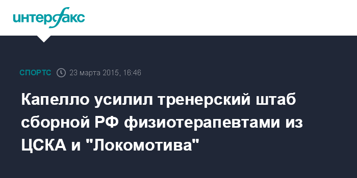 Капелло усилил тренерский штаб сборной РФ физиотерапевтами из ЦСКА и "Локомотива"