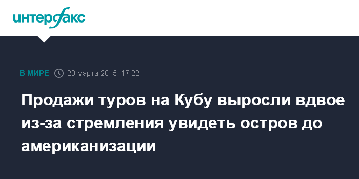 Москва. 23 марта. INTERFAX.RU - Бронирование туров на Кубу резко выросло после того, как Вашингтон заявил, что намерен возобновить связи с Гаваной, сообщает в понедельник агентство AP.