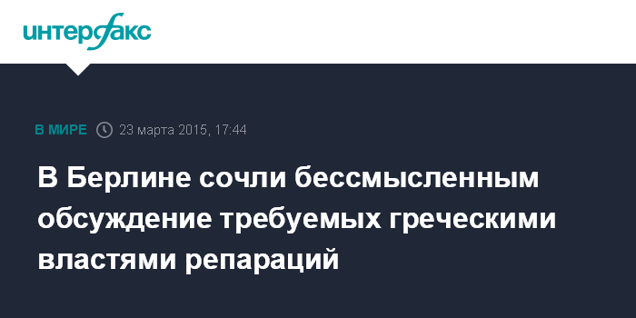 В Берлине сочли бессмысленным обсуждение требуемых греческими властями репараций