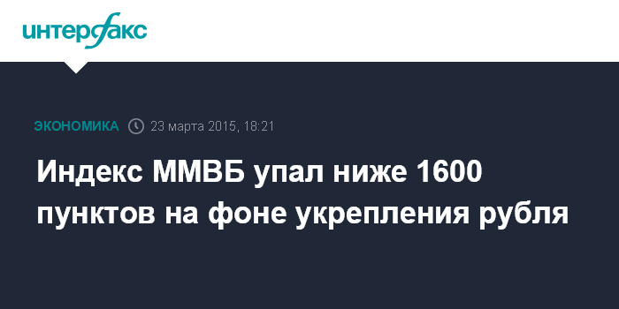 Индекс ММВБ упал ниже 1600 пунктов на фоне укрепления рубля