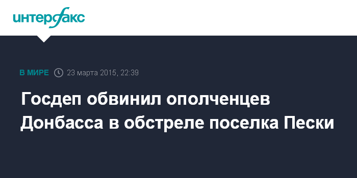 Москва. 23 марта. INTERFAX.RU - Государственный департамент США сообщил в понедельник, что ополченцы накануне обстреляли поселок Пески в Донецкой области Украины.