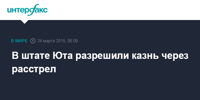 Москва. 24 марта. INTERFAX.RU - Губернатор американского штата Юта подписал закон, согласно которому разрешается использовать расстрел в качестве исполнения смертного приговоры, сообщают местные СМИ.