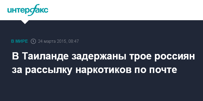 Москва. 24 марта. INTERFAX.RU - Полиция Таиланда задержала троих россиян по подозрению в распространении наркотиков. Как пишет издание Pattaya One, они наладили канал переправки марихуаны за границу по почте.