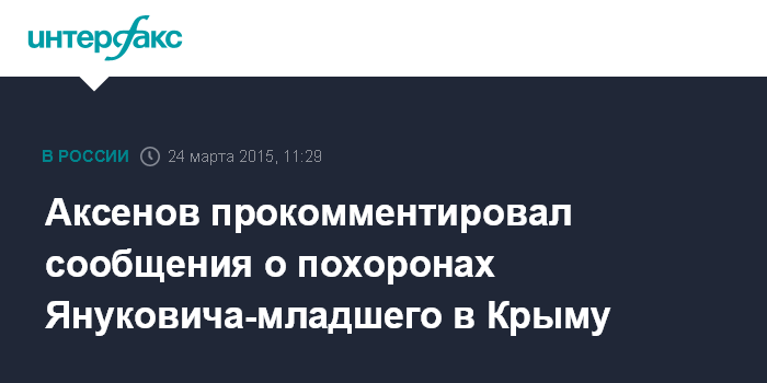 Москва. 24 марта. INTERFAX.RU - Глава Крыма Сергей Аксенов утверждает, что к руководству полуострова не поступало обращений в связи с якобы похоронами сына Виктора Януковича на территории региона.