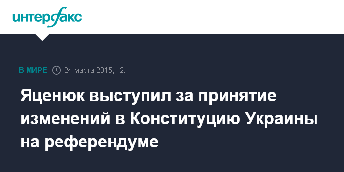Москва. 24 марта. INTERFAX.RU - Премьер-министр Украины Арсений Яценюк заявил, что изменения в основной закон страны необходимо вынести на референдум.