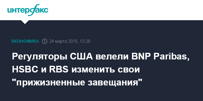 Регуляторы США велели BNP Paribas, HSBC и RBS изменить свои "прижизненные завещания"