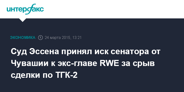 Суд Эссена принял иск сенатора от Чувашии к экс-главе RWE за срыв сделки по ТГК-2