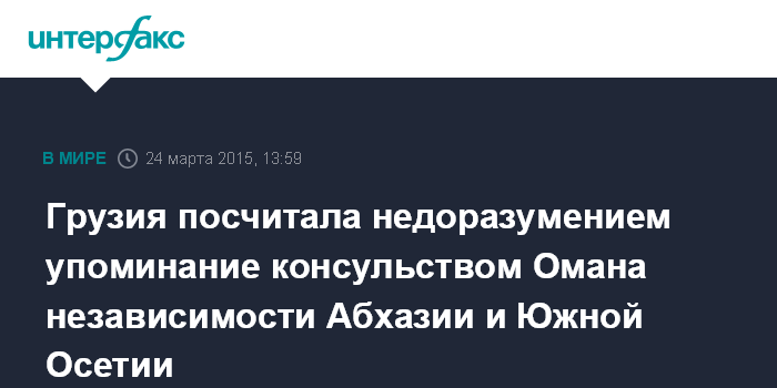 Москва. 24 марта. INTERFAX.RU - Грузия ведет работу над разъяснением ситуации с указанием на сайте генконсульства Омана в республике в ряду независимых государств Абхазии и Южной Осетии.