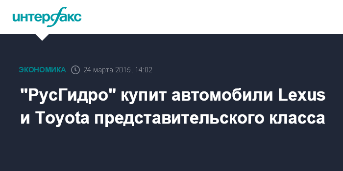 "РусГидро" купит автомобили Lexus и Toyota представительского класса