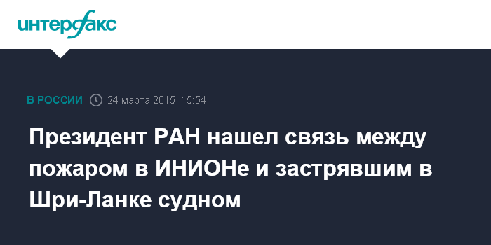 Москва. 24 марта. INTERFAX.RU - Президент Российской академии наук Владимир Фортов видит общее между пожаром в библиотеке ИНИОН и ситуацией сроссийским судном, застрявшим в Шри-Ланке.