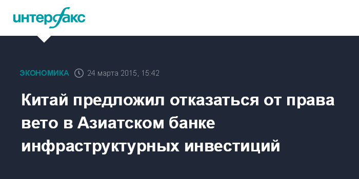 Китай предложил отказаться от права вето в Азиатском банке инфраструктурных инвестиций