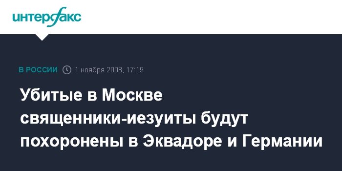 Убитые в Москве священники-иезуиты будут похоронены в Эквадоре и Германии