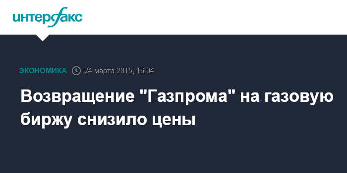 Возвращение "Газпрома" на газовую биржу снизило цены