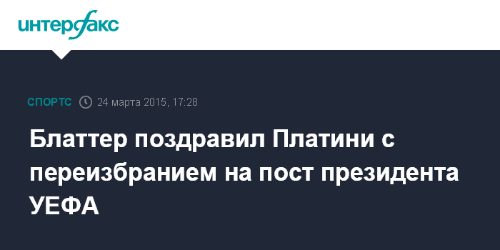 "Поздравляю Мишеля Платини с переизбранием на пост президента УЕФА. Это большой знак доверия со стороны европейского футбольного сообщества", - написал Блаттер в своем твиттере.