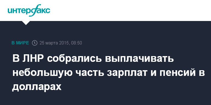 "На сегодня в бюджет республики, помимо гривны и рубля, есть первые налоговые поступления и в долларах, поэтому какая-то небольшая часть зарплат, пенсий и пособий будет выплачиваться в долларах", - приводит слова Мануйлова Луганский информационный центр.