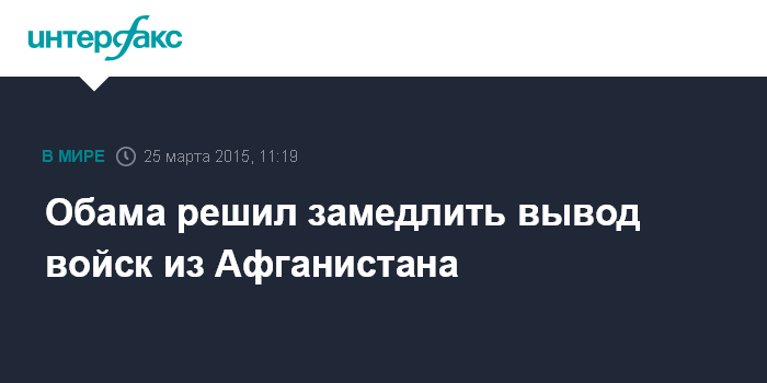 Москва. 25 марта. INTERFAX.RU - Президент США Барак Обама принял решение замедлить вывод американских военнослужащих из Афганистана, передают американские СМИ. По их данным, Обама согласился сохранить нынешнее число военных в стране - 9,8 тыс. - до конца 2015 года.