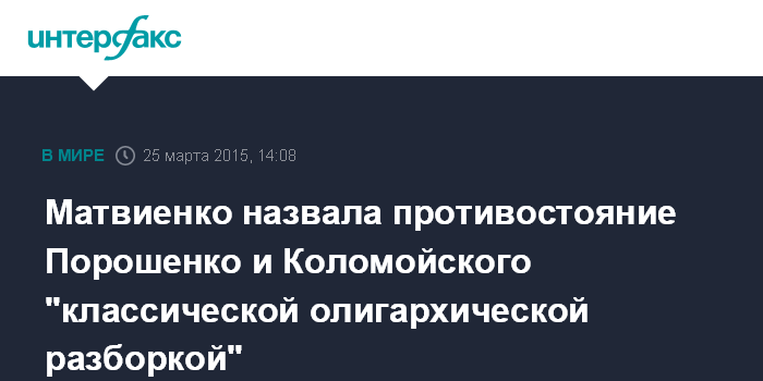 Москва. 25 марта. INTERFAX.RU - Спикер Совета Федерации Валентина Матвиенко назвала противодействие президента Украины Петра Порошенко с олигархом Игорем Коломойским "олигархической войной", которая приведет к расколу внутри Украины.