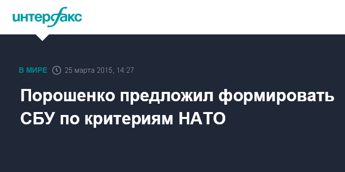 Москва. 25 марта. INTERFAX.RU - Служба безопасности Украины должна формироваться по критериям НАТО, заявляет президент Украины Петр Порошенко.