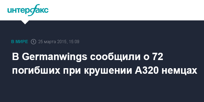 В Germanwings сообщили о 72 погибших при крушении А320 немцах