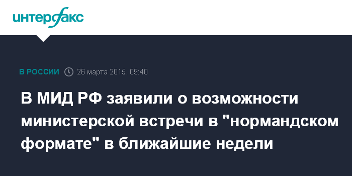 Москва. 26 марта. INTERFAX.RU - Россия готова к министерской встрече в "нормандском формате", она может состояться в ближайшие недели, заявил замглавы МИД РФ Григорий Карасин.