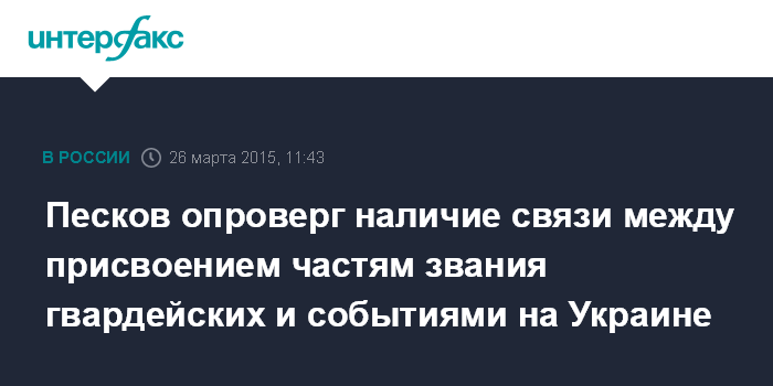 Песков опроверг наличие связи между присвоением частям звания гвардейских и событиями на Украине
