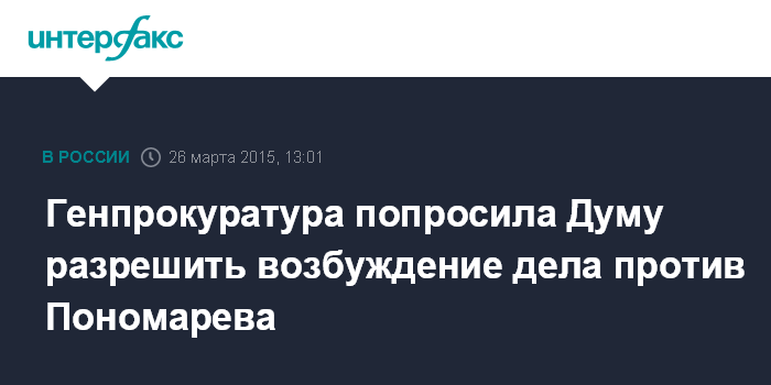 Москва. 26 марта. INTERFAX.RU - В представлении Генпрокуратуры по поводу снятия неприкосновенности с депутата Госдумы Ильи Пономарева содержится и просьба дать согласие на возбуждении в отношении него уголовного дела.
