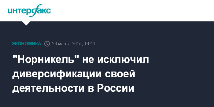 Москва. 26 марта. INTERFAX.RU – "Норникель" не исключает диверсификации в российские проекты, не связанные с производством его основных металлов, - в случае, если эти проекты соответствуют критериям стратегии компании, заявил в интервью "Интерфаксу" первый заместитель генерального директора - операционный директор ГМК Сергей Дяченко.