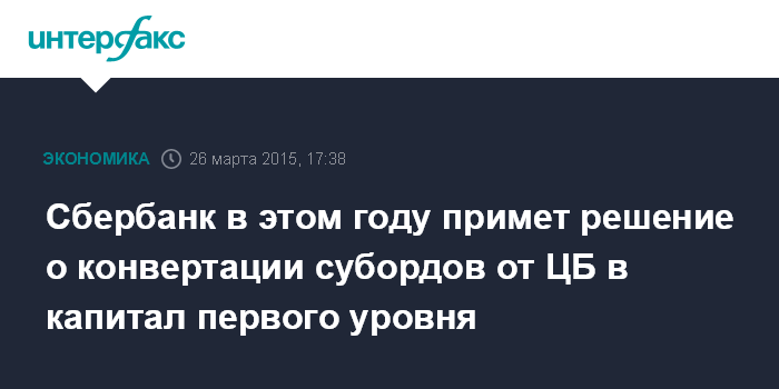 Москва. 26 марта. INTERFAX.RU – Сбербанк в этом году примет решение о возможной конвертации субордов от ЦБ РФ в капитал первого уровня, сообщил финансовый директор банка Александр Морозов на телефонной конференции в четверг.